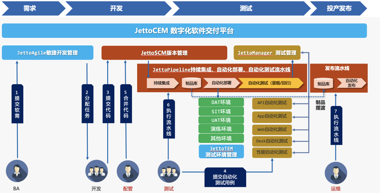 配置環境管理平臺是捷科智誠專為金融行業客戶量身打造的數字化軟件交付平臺。通過集成成熟的開源軟件或客戶已有系統,以流水線形式固化軟件交付工藝與流程,打通從需求->代碼構建->數據庫發布->應用部署->系統測試->上線發布全流程。同時在代碼版本集中化管控、增量發布、數據庫發布、制品元數據、環境管理、配置管理等功能方面具有突出優勢。幫助環境配置管理人員提升工作效率的同時能夠實現資產復用。